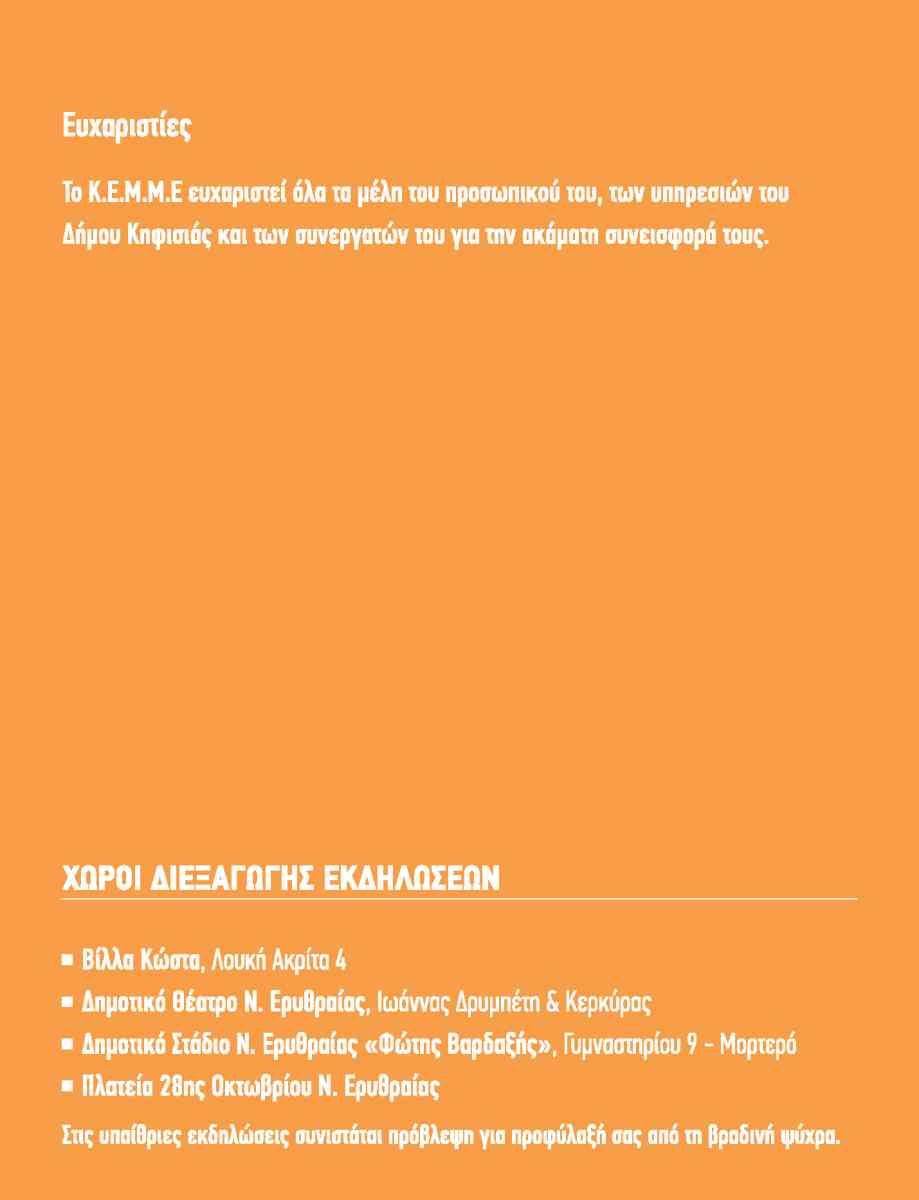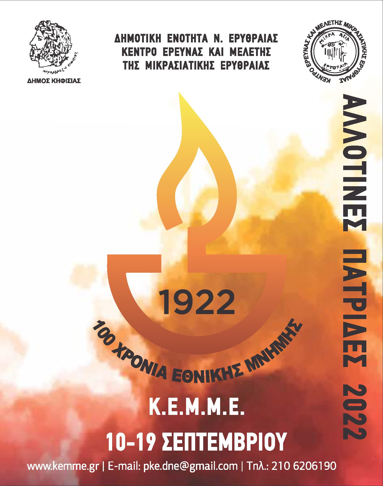 Τιμά το παρελθόν και διατηρεί ζωντανή την ιστορική μνήμη μεταλαμπαδεύοντάς την στις επόμενες γενιές με τις «Αλλοτινές Πατρίδες». Συγχαρητήρια για την οργάνωσή τους στο Δ.Σ. του ΚΕΜΜΕ και την άξια Πρόεδρό του κα Έφη Κούτση καθώς επίσης και στους Μικρασιατικούς Συλλόγους που δραστηριοποιούνται στον Δήμο μας: Αδελφότητα Αλατσατιανών Νέας Ερυθραίας, Αδελφότητα Σιβρισαρίου Σμύρνης «Οι Ταξιάρχες», Ένωση Μικρασιατών Νέας Ερυθραίας και Εξωραϊστικό & Μορφωτικό Σύλλογο Λυθριού «Η Αγία Ματρώνα».