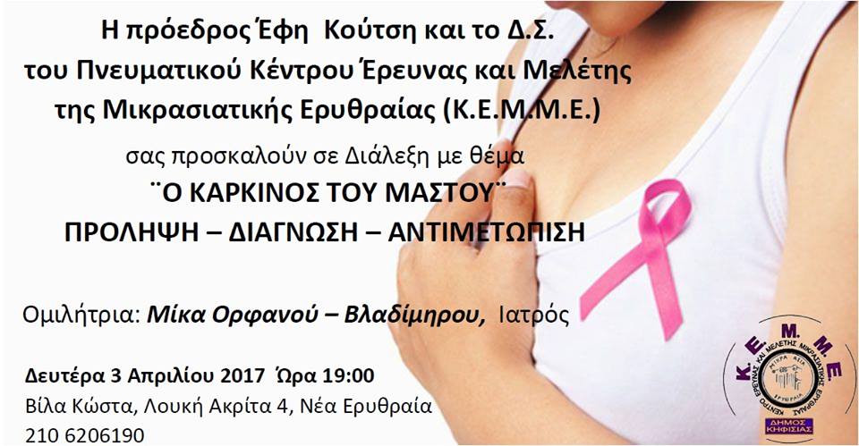 ΔΙΑΛΕΞΗ ΣΤΟ Κ.Ε.Μ.Μ.Ε Δευτέρα, 3 Απριλίου 2017.