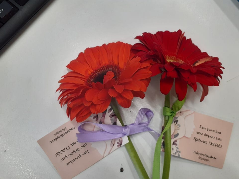 Μια ευγενική κίνηση του Γιώργου Θωμάκου που χάρισε χαμόγελα στο γυναικείο δυναμικό του Δήμου μας μαζί με τις ευχές και το σεβασμό του στον σπουδαίο και πολλαπλό ρόλο της γυναίκας στη σύγχρονη κοινωνία.