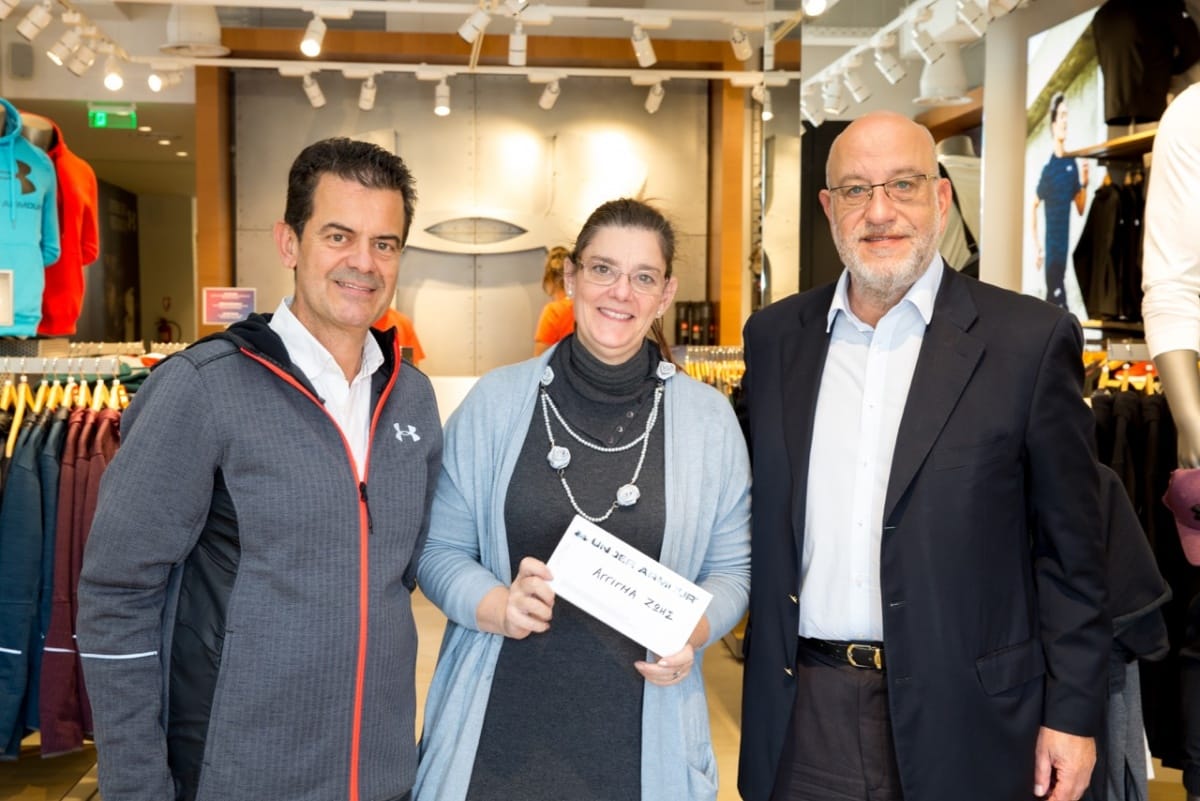 H επιταγή παραδόθηκε στην Διευθύντρια της ΑΜΚΕ «ΑΓΓΙΓΜΑ ΖΩΗΣ» κ. Χριστίνα Νομικού από τον εκπρόσωπο της Εταιρίας Under Armour και Διευθυντή Marketing κ. Γιάννη Σούμπαση,με σκοπό την ενίσχυση των υπηρεσιών κοινωνικού και προνοιακού χαρακτήρα σε ογκολογικούς ασθενείς.