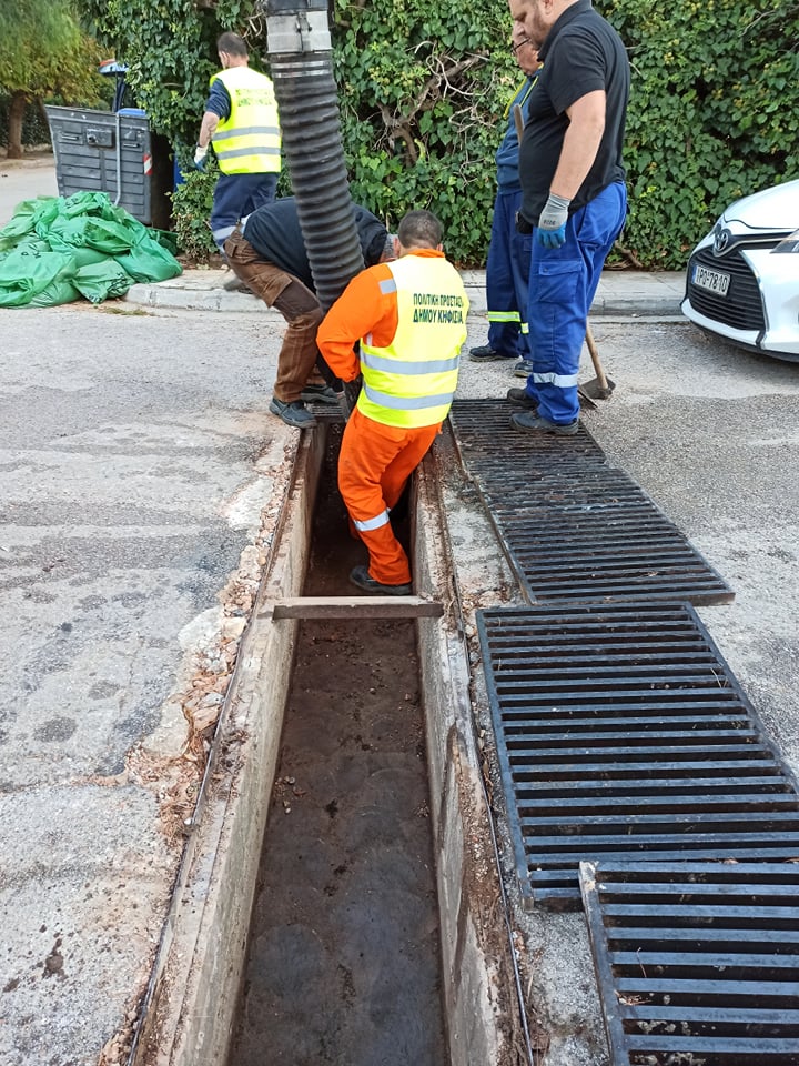 Εργασίες καθαρισμού φρεατίων, αμπολών και ποδηλατοδρόμων σε περιοχές του Δήμου πραγματοποίησε η Πολιτική Προστασία του Δήμου Κηφισιάς.