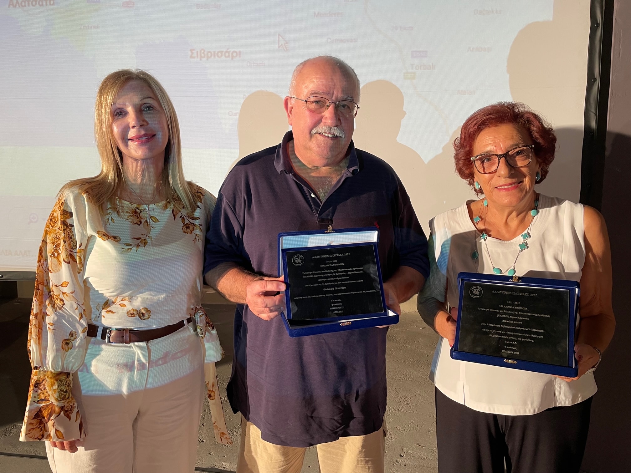 Μετά το τέλος της ομιλίας η πρόεδρος του ΚΕΜΜΕ κα Έφη Κούτση απένειμε τιμητική πλακέτα στην Αδελφότητα Σιβρισαρίου Σμύρνης «Οι Ταξιάρχες» για την προσφορά της. Την πλακέτα παρέλαβε η πρόεδρος της Αδελφότητας κα Στέλλα Βογιατζή.