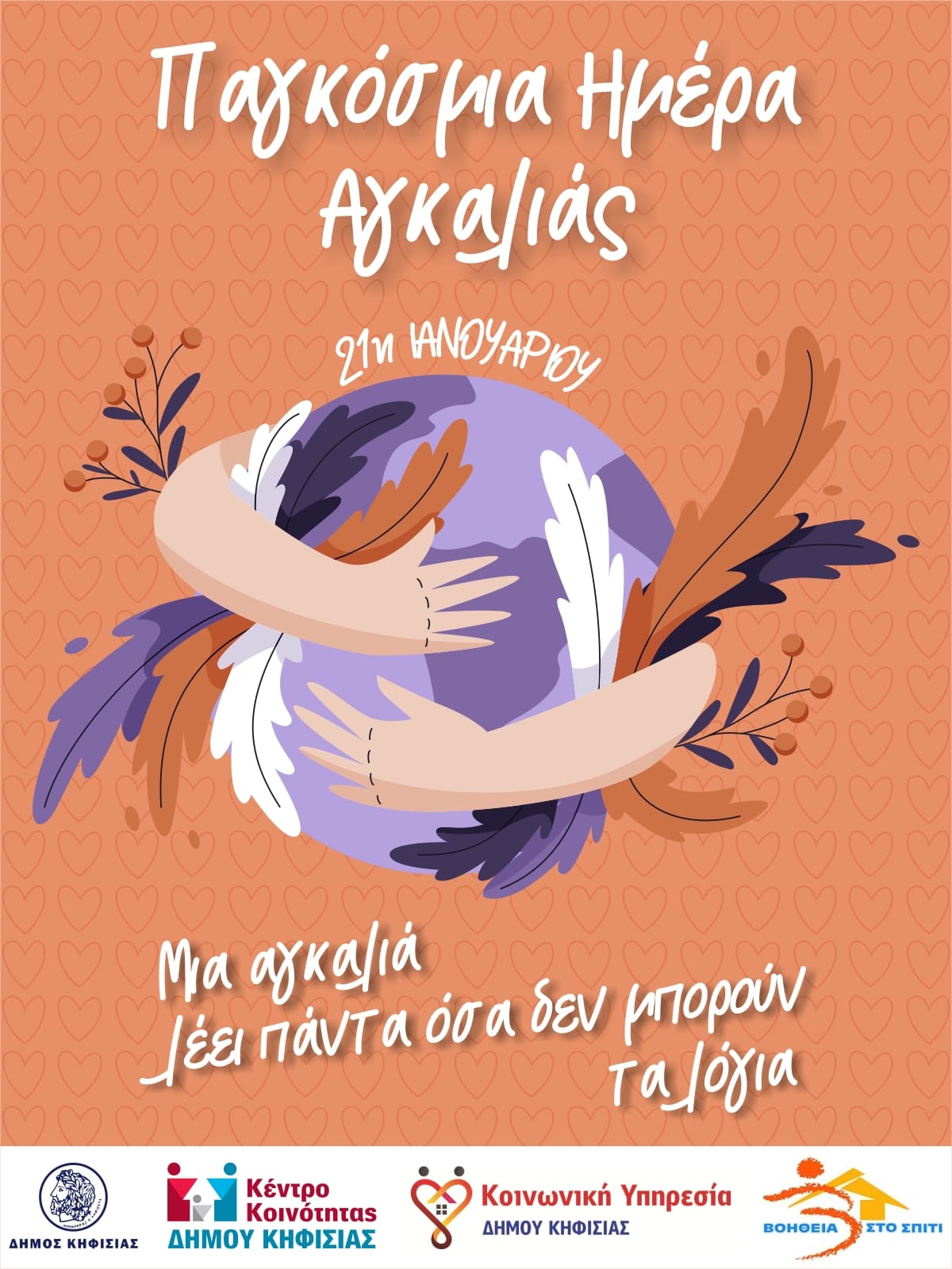 Με αφορμή τη σημερινή Παγκόσμια Ημέρα της Αγκαλιάς, που γιορτάζεται κάθε χρόνο στις 21 Ιανουαρίου, ο Δήμος Κηφισιάς θυμίζει τη δύναμη και την αξία της ανθρώπινης επαφής.